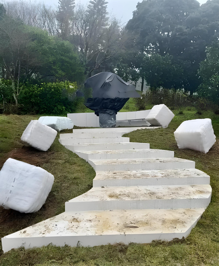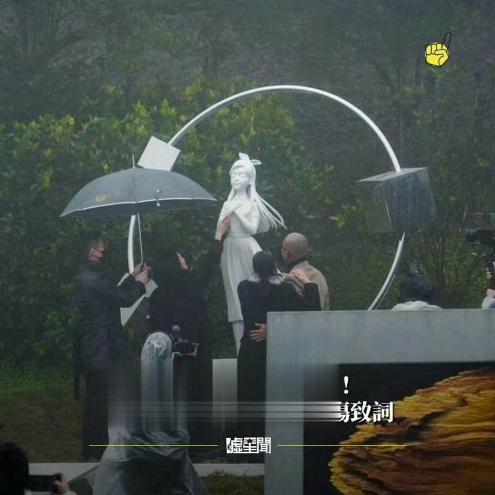 大S丈夫具俊晔设计的纪念雕像于雨中揭幕,亲友悉数到场。