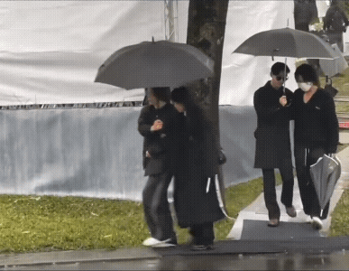 离场时言承旭因悲痛难以行走,周渝民单手搀扶其手臂,两人未发一言在雨中缓步离去,被媒体镜头记录下这一场景。